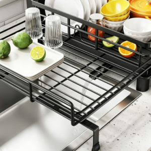Adjustable Over-the-Sink Dish Rack — Large-Size Telescopic Stainless Steel Design (Black)
