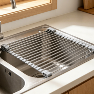Roll-Up Foldable Dish Rack – Over-the-Sink Stainless Steel Organizer & Multi-functional Kitchen Shelf (Gray)