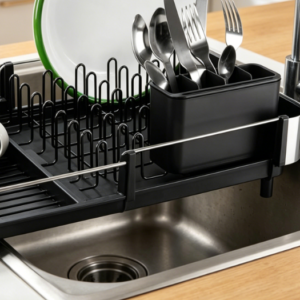 Expandable In-Sink Dish Rack (Includes Cutlery Caddy) – Space-Saving Design (Black)