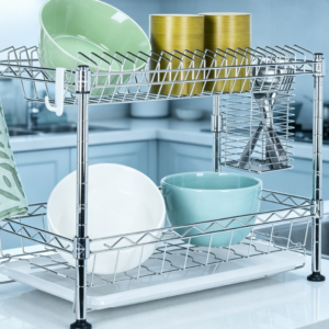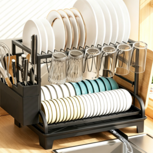 Double-Tier Adjustable Dish Rack (with Cutlery Holder) — Durable Steel Construction