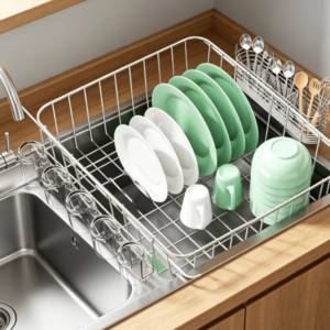 • Wall-Mounted In-Sink Dish Rack — High-Capacity Stainless Steel Kitchen Organizer