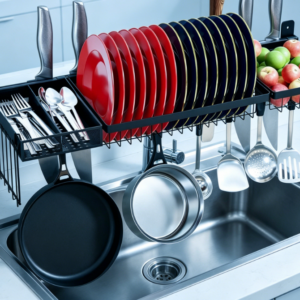 • Telescopic Dish Rack (with Drip Tray) — Stainless Steel Cutlery Organizer