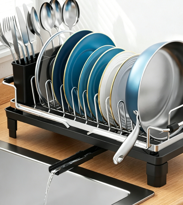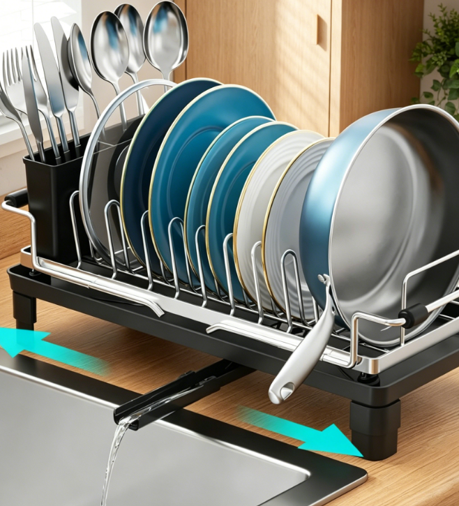 Compact Expandable Dish Rack (with Drainage Spout) – Ideal for Small Spaces